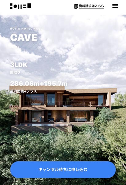 (「NOT A HOTEL NASU CAVE」のホームページ)