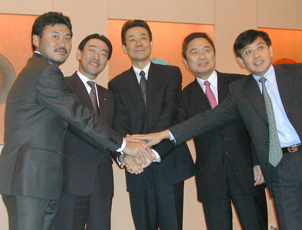 右から二番目(楽天証券社長当時の2005年)/(C)日刊ゲンダイ