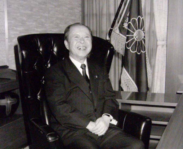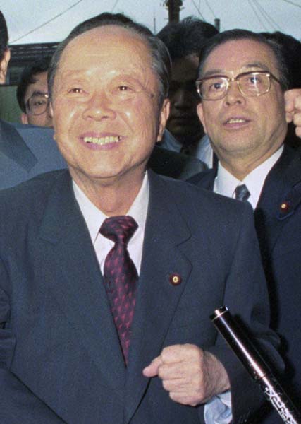 宮沢喜一新総裁と阿部文男議員(C)共同通信社