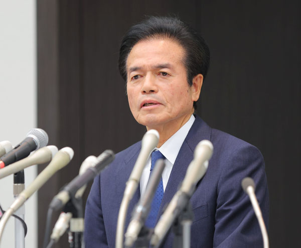 記者会見するビッグモーターの兼重宏行社長(C)日刊ゲンダイ