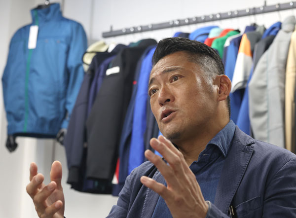 ユニホームへの思いを語るHARADAの原田栄造社長(C)日刊ゲンダイ