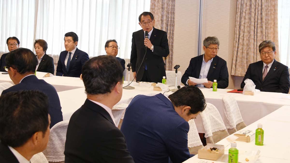 安倍派(清和会)だけは「詳細確認中」…(会合であいさつする塩谷立座長)/(C)日刊ゲンダイ