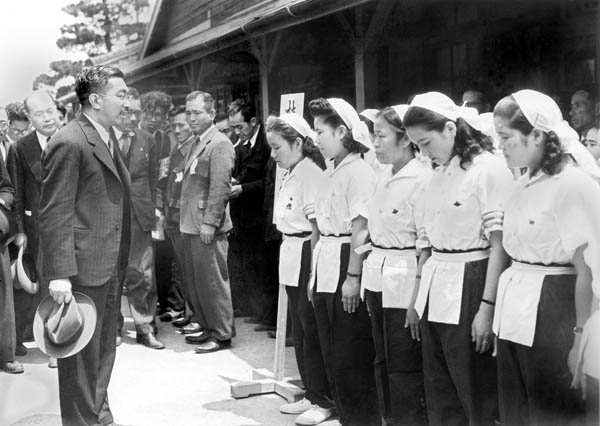 かって御巡幸の途で昭和天皇も訪れた(大和紡績佐賀工場を訪問、出迎えた従業員らに声を掛ける昭和天皇=1949〈昭和24〉年5月)/(C)共同通信社