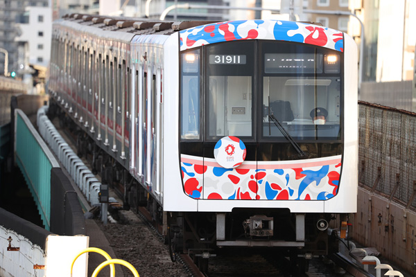 昨30日から運行開始した地下鉄大阪メトロ御堂筋線の「2025年大阪・関西万博」ラッピング列車(C)日刊ゲンダイ