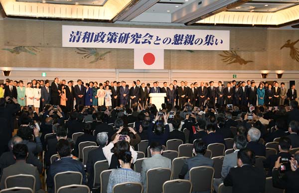 あまりに無責任、あっさり撤回では済まされない(安倍派「清和会」の塩谷立座長=中央)/(C)日刊ゲンダイ