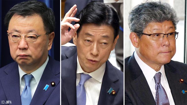 安倍派の3幹部、左から松野博一官房長官、西村康稔経産相、高木毅国対委員長(C)日刊ゲンダイ
