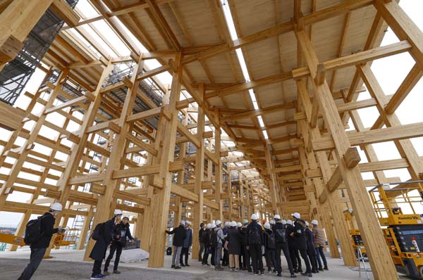 大屋根(リング)は「貫工法」ではなく、実はボルトや金属プレートを使った“伝統工法もどき”(C)共同通信社
