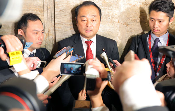 昨13日、国会内で取材に応じる宮沢博行防衛副大臣(C)日刊ゲンダイ