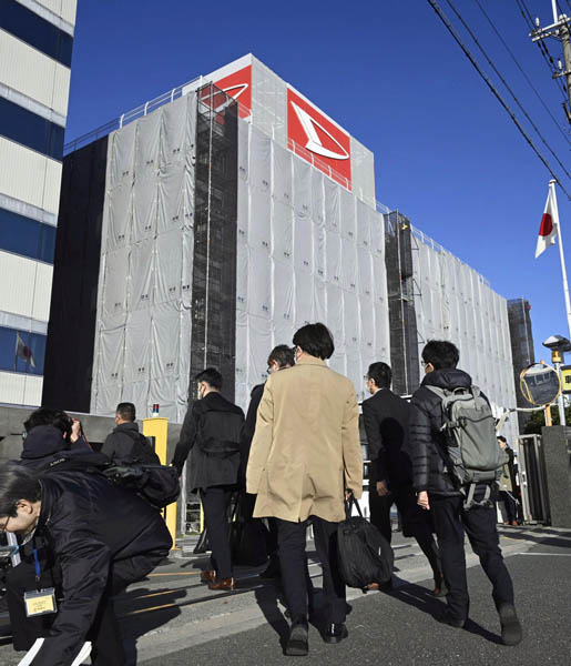 21日午前、ダイハツ工業本社に立ち入り検査に入る国交省の職員=大阪府池田市(C)共同通信社