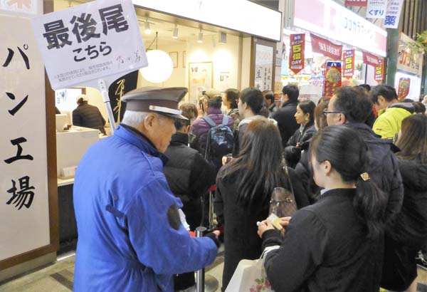 「乃が美」は高級食パンブームの火付け役だった(同社なんば店前に列をつくる大勢の客=2019年)/(C)共同通信社