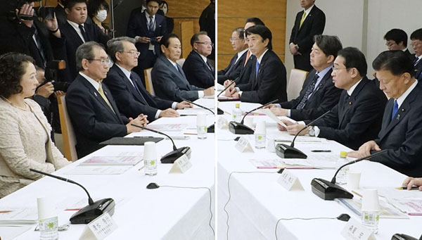 中小企業の賃上げなくして成功はあり得ない(政労使会議に臨む岸田首相=右)/(C)共同通信社