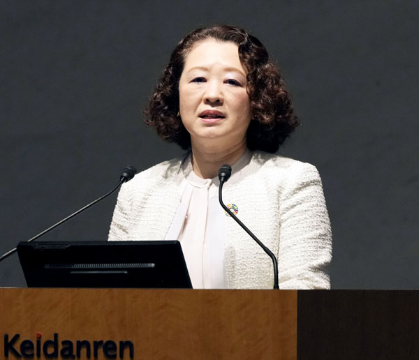 連合は大企業中心(「労使フォーラム」で講演する連合の芳野友子会長)/(C)共同通信社