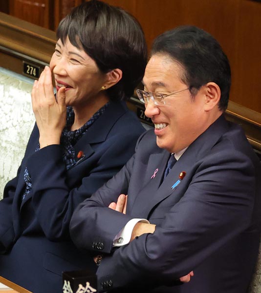 「ポスト岸田」に向け、“第二の安倍派”のような形で足がかりを…(岸田首相と高市経済安保担当相)/(C)日刊ゲンダイ