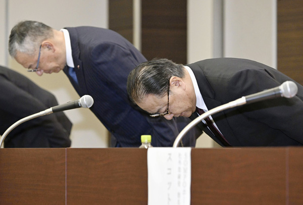 謝罪するSOMPOホールディングスの桜田謙悟会長兼グループCEO(右)/(C)共同通信社