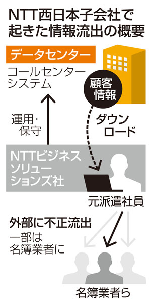 甘い情報管理が被害を大きくさせる…(昨2023年10月、NTT西日本子会社で起きた情報流出の概要)/(C)共同通信社