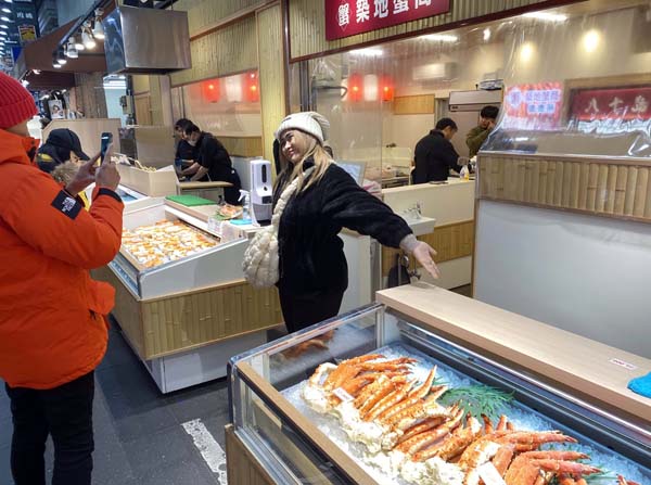 カニと一緒に「はい、ポーズ」/(C)日刊ゲンダイ