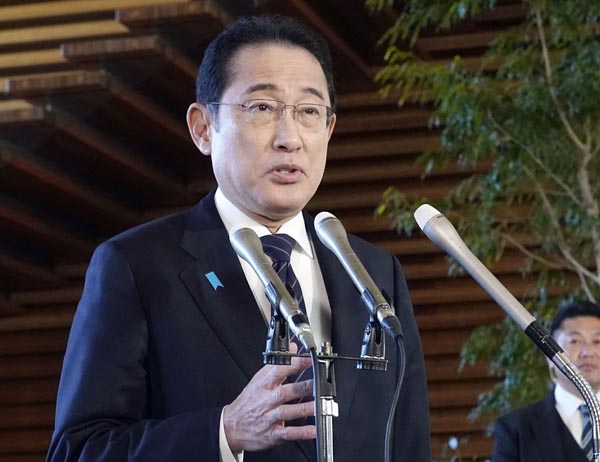 衆院政倫審出席の意向について、記者団の取材に応じる岸田首相(C)共同通信社