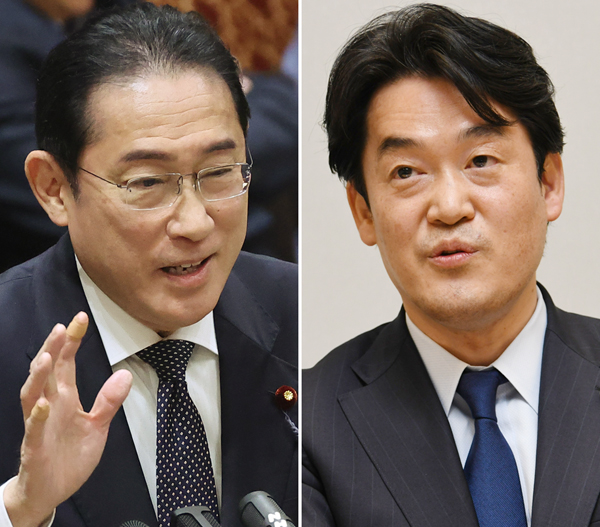 小西氏(右)の問いにも真正面から答えない岸田首相(C)日刊ゲンダイ