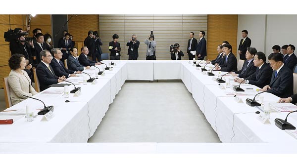 働く人の7割が中小企業、大企業ではなく…(昨年12月の政労使会議)/(C)共同通信社