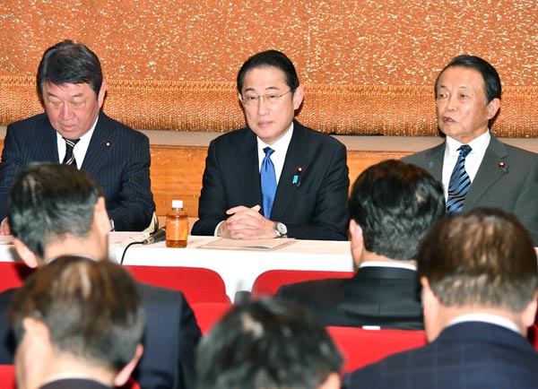 裏金を「寄付」でマネーロンダリング(自民党の政治刷新本部会合での岸田首相=中央)/(C)日刊ゲンダイ
