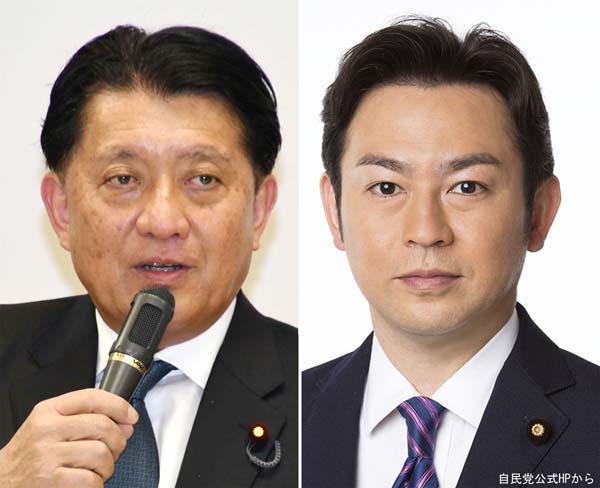 脱税まがいの税控除(自民党の平井卓也デジタル相、福岡資磨参院議員=右)/(C)日刊ゲンダイ