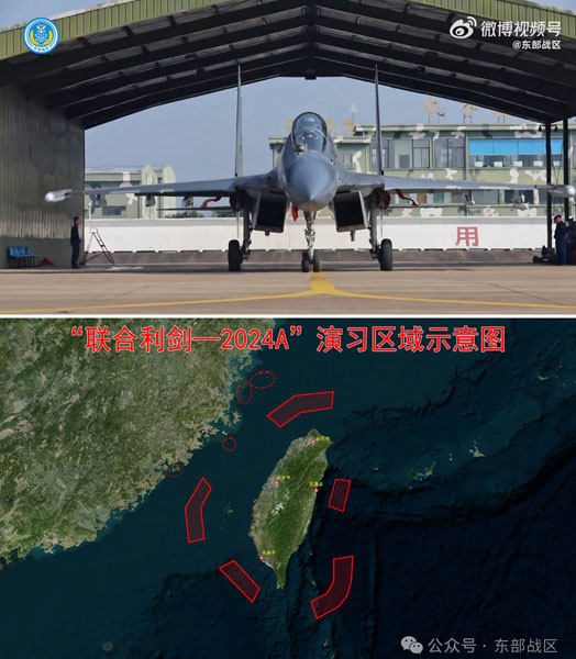 23日には、中国軍が台湾包囲し軍事演習を行った(「微博(ウェイボ)」、「微信(ウィーチャット)」から)