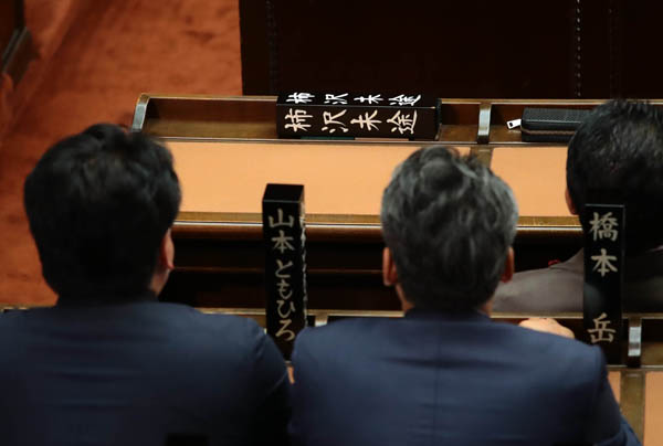 衆院本会議を欠席した柿沢未途議員(2023年11月撮影)の議席(C)日刊ゲンダイ