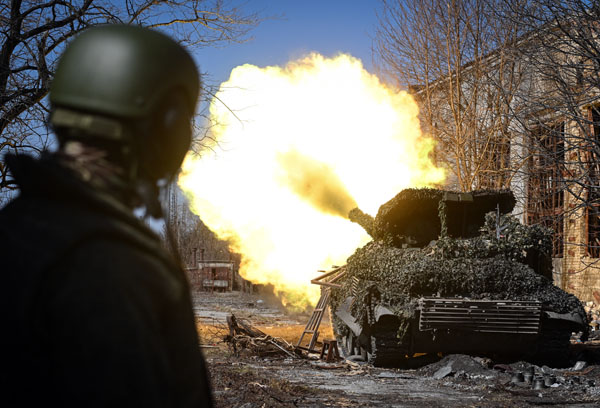 ウクライナドネツク州で砲撃するロシア軍(C)Sputnik/共同通信イメージズ