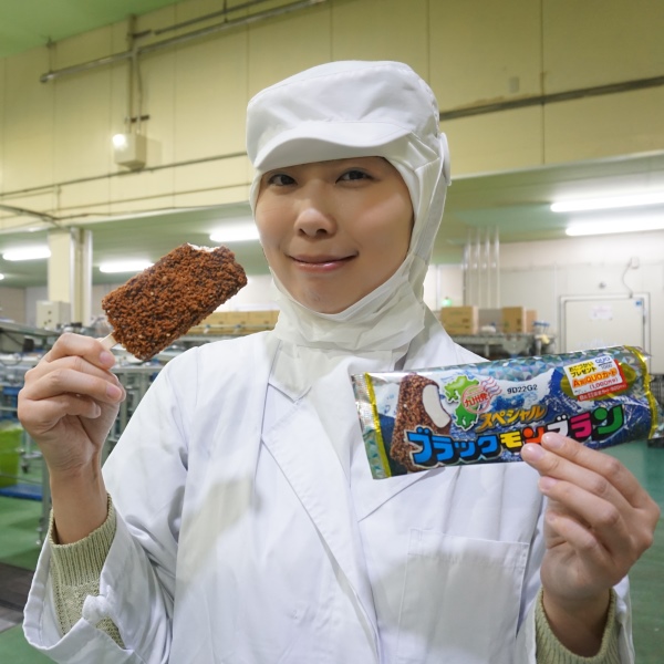 九州のソウルアイス「ブラックモンブラン」を持つ竹下真由社長(提供写真)