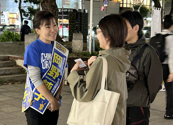 2024年衆院選千葉5区、街頭で有権者と言葉を交わす国民民主候補の岡野純子氏(C)日刊ゲンダイ