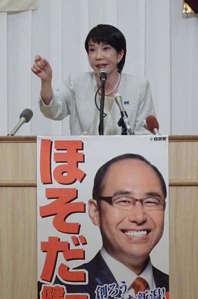 旧安倍派“裏金非公認” 細田健一氏の応援入りした高市早苗氏(C)日刊ゲンダイ
