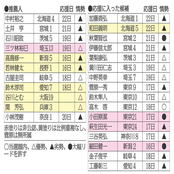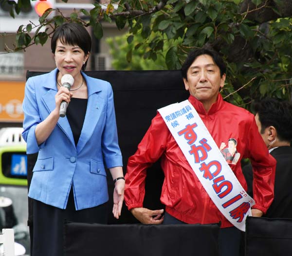 高市早苗氏は「特に意図はございません」というが…(公職選挙法違反による公民権停止期間を終え、無所属で出馬した菅原一秀氏=右)/(C)日刊ゲンダイ