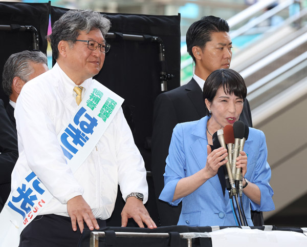 バリバリの関西弁でまくしたて、”裏金非公認”萩生田光一氏を応援演説(高市早苗氏=右)/(C)日刊ゲンダイ