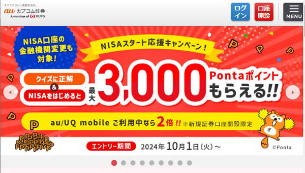 三菱UFJeスマート証券へ…(auカブコム証券HP)