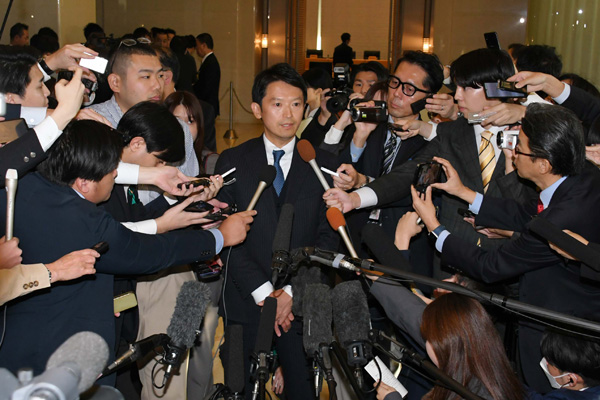 全国知事会議終了後、報道陣の取材に応じる兵庫県の斎藤元彦知事(C)日刊ゲンダイ