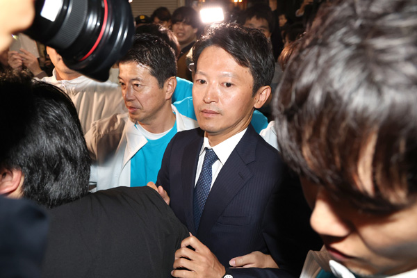 兵庫県知事選で再選を果たした斎藤元彦知事=2024年11月17日(C)日刊ゲンダイ