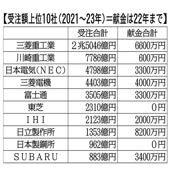 【別表】 【受注額上位10社(2021~2023)=献金は2022年まで】/(C)日刊ゲンダイ