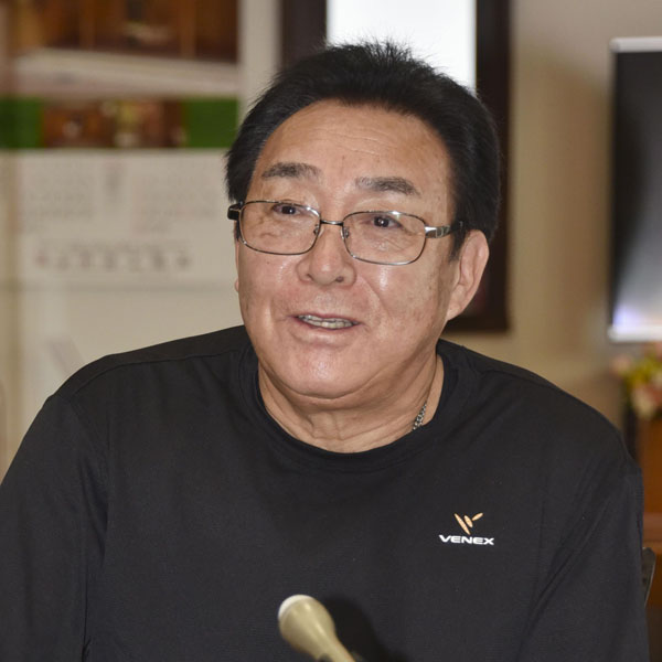 豊洲市場の初競りで最高値を付けたクロマグロを取った竹内正弘さん(C)共同通信社