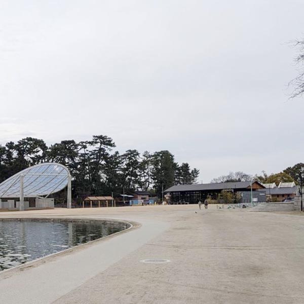 天王川公園のスタバ(右奥、提供=井桁亮市議)