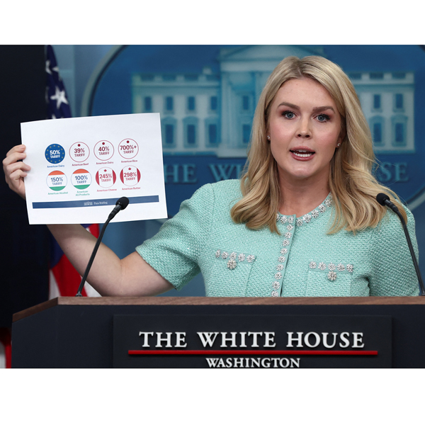 “高関税国リスト”を掲げるレビット米大統領報道官(C)ロイター