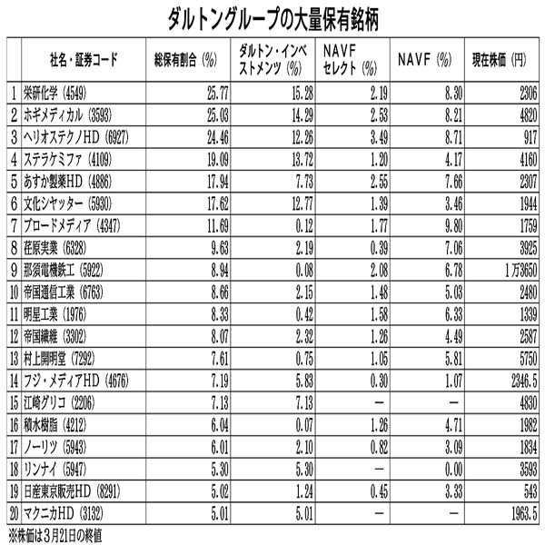 【別表】【ダルトングループの大量保有銘柄】/(C)日刊ゲンダイ