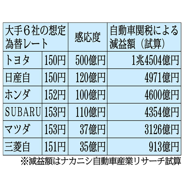 【別表】【自動車大手6社の想定為替レート=2025年3月期(第4四半期)設定】/(C)日刊ゲンダイ