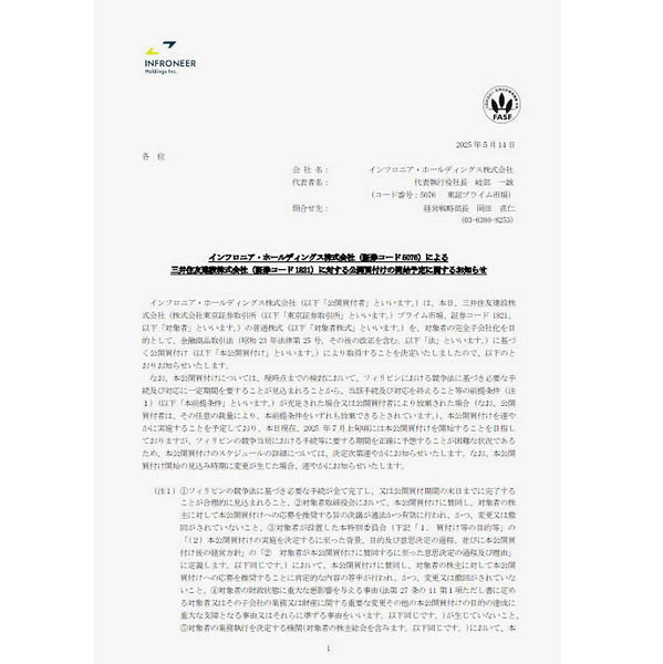インフロニア・ホールディングスの423ページにも及ぶリリース