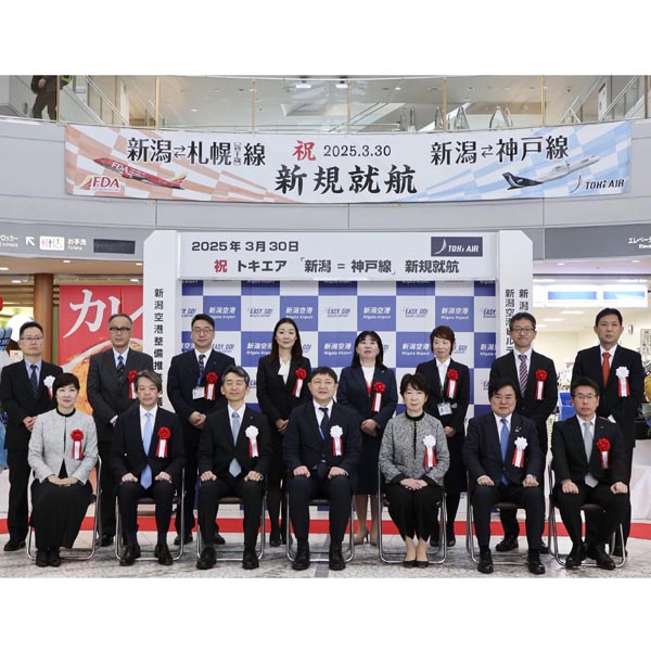 トキエアの新潟―神戸便就航の記念セレモニー=2025年3月(C)共同通信社