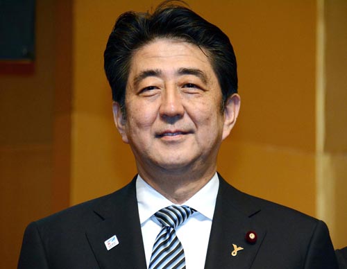 胸を張って会見場へ入った安倍首相/(C)日刊ゲンダイ