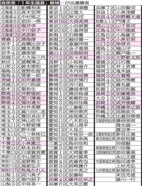 自民党「1年生議員」の当確は25人/(C)日刊ゲンダイ