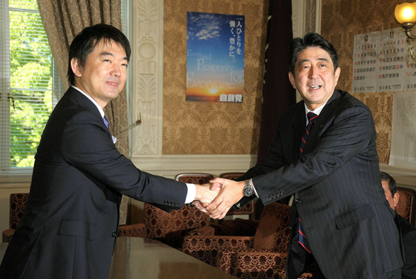 安倍首相(右)と橋下大阪市長(C)日刊ゲンダイ