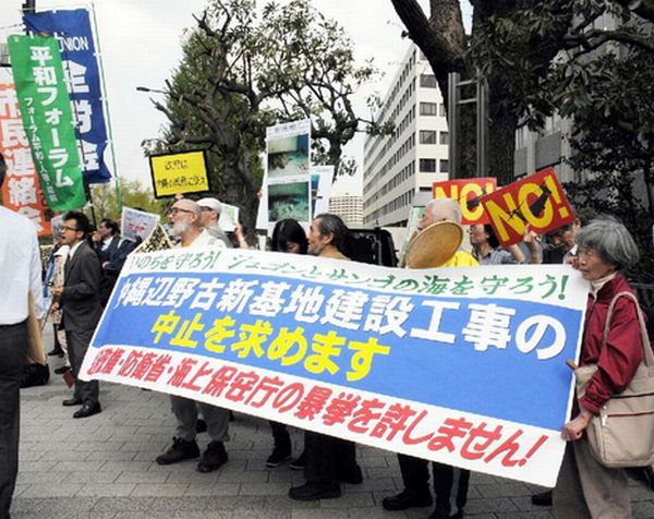 4月に官邸周辺で行われた辺野古移設反対デモ集会(C)日刊ゲンダイ