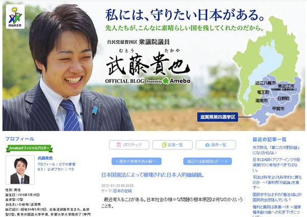 安倍チルドレンにまともな議員はいない(武藤貴也議員のHPから)