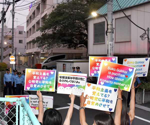 ついに公明党本部前でも 「反対」のプラカードで沈黙アピール
